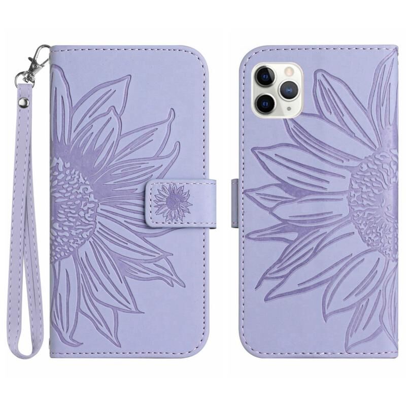 Θήκη τηλεφώνου από δέρμα με σχέδιο ηλιοτρόπιου και αίσθηση δέρματος για iPhone 11 Pro Max, τύπου flip με κορδόνι (Κόκκινο)