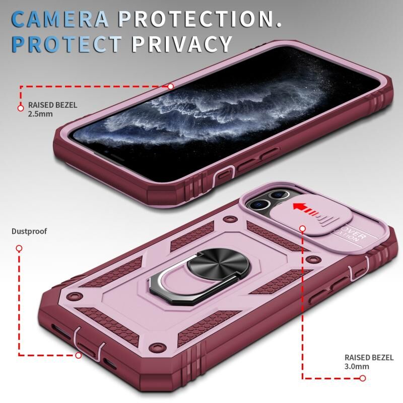 For iPhone 11 Pro Max Sliding Camera Cover Design TPU + PC Protective Case with 360 Degree Rotating Holder & Card Slot (Pink+Dark Red)