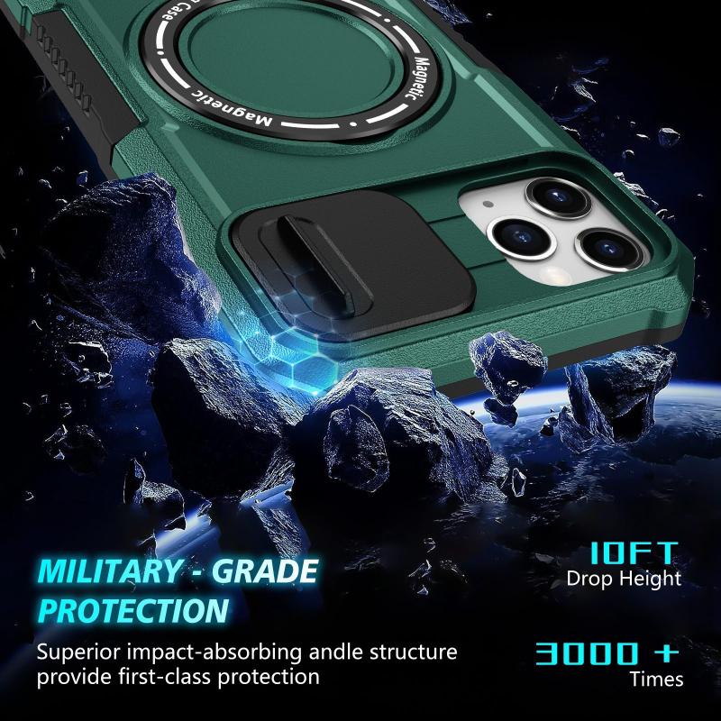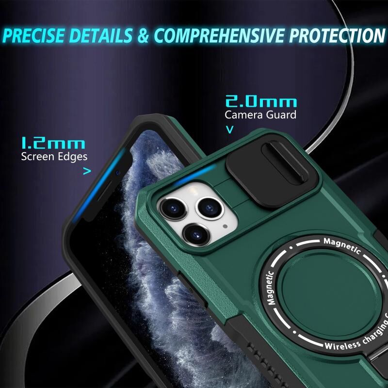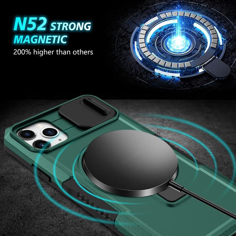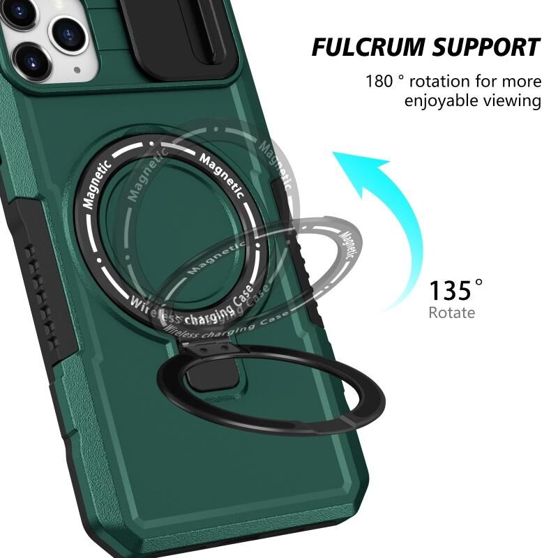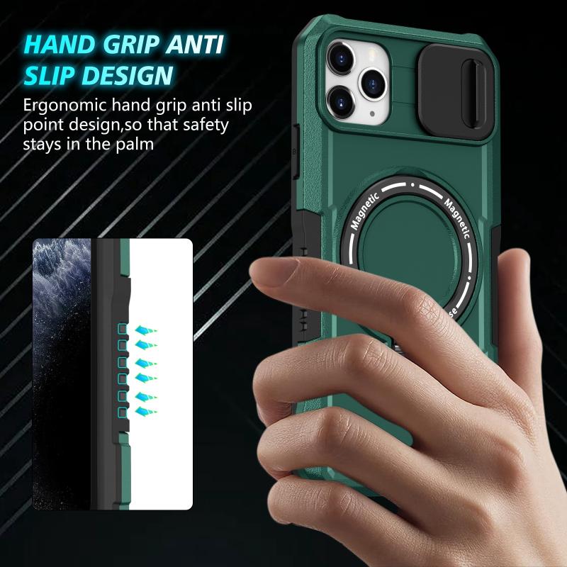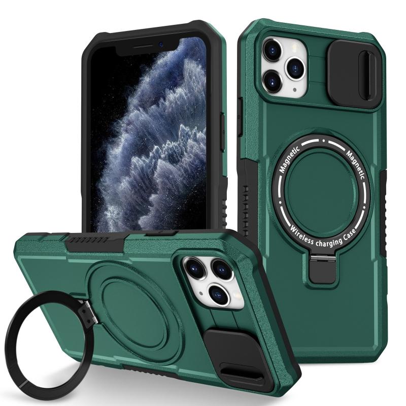 For iPhone 11 Pro Max Sliding Camshield MagSafe Holder TPU Hybrid PC Phone Case(Deep Green)