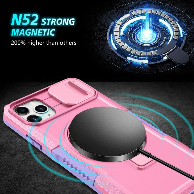 For iPhone 11 Pro Max Sliding Camshield MagSafe Holder TPU Hybrid PC Phone Case(Purple Pink)