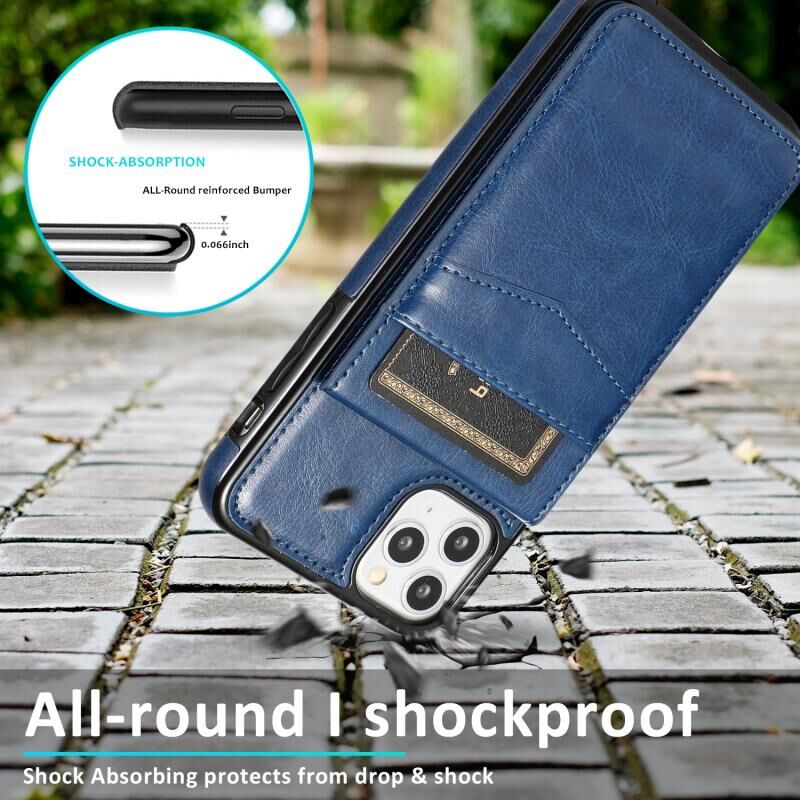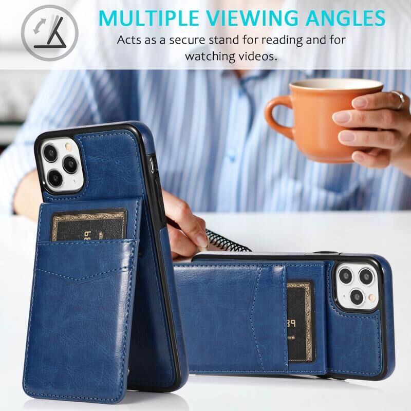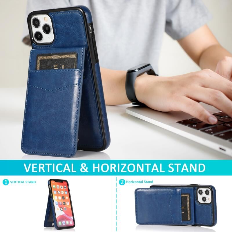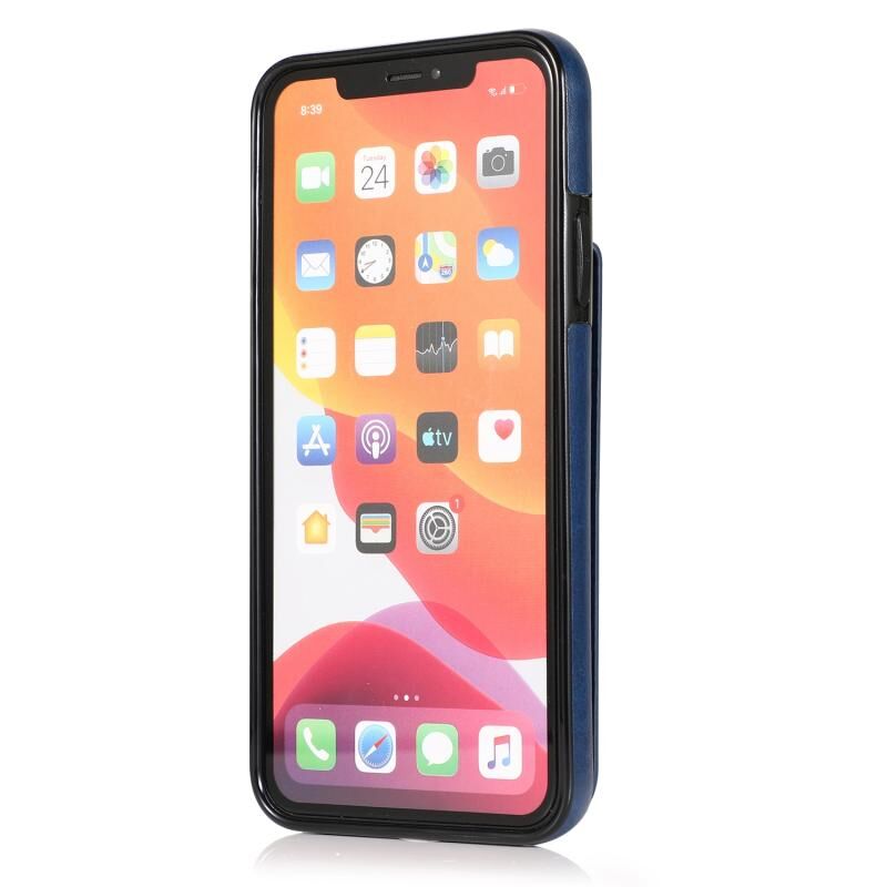For iPhone 11 Pro Max Solid Color PC + TPU Protective Case with Holder & Card Slots (Blue)