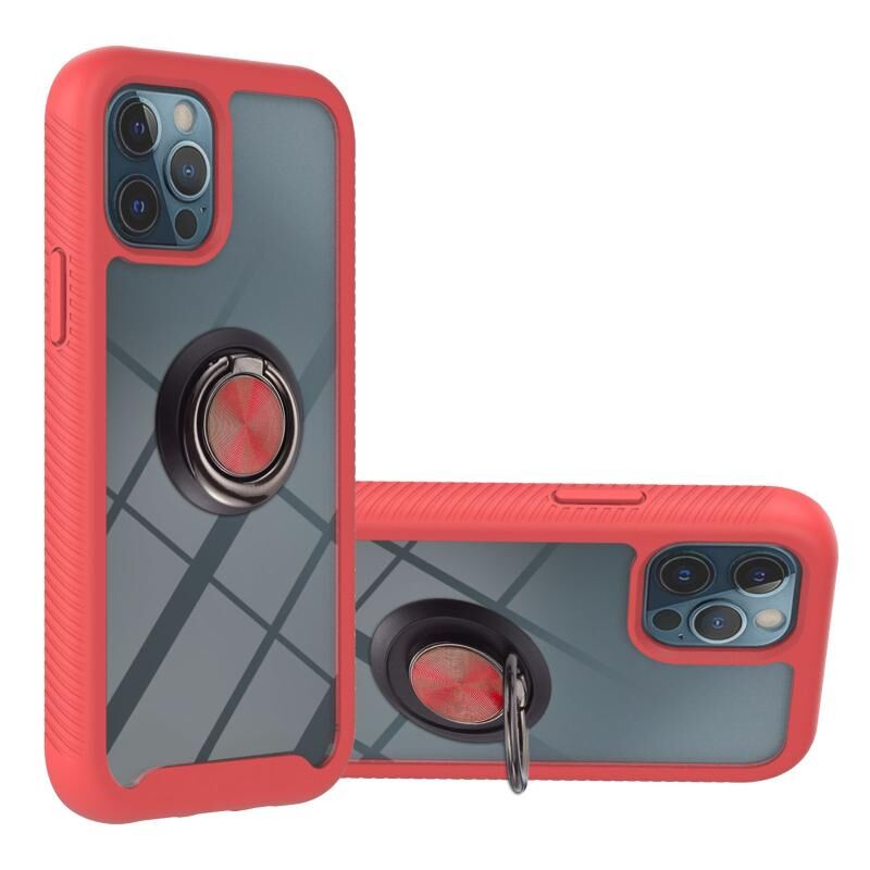 For iPhone 11 Pro Max Starry Sky Solid Color Series Shockproof PC + TPU Protective Case with Ring Holder & Magnetic Function (Red)