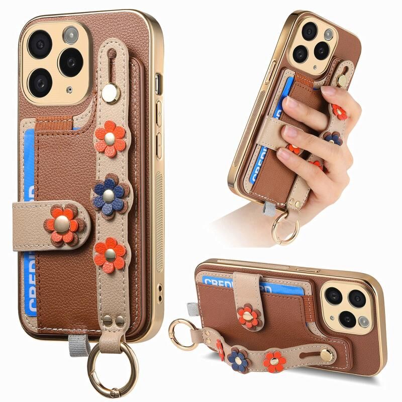 Θήκη τηλεφώνου για iPhone 11 Pro Max με καρπούχο λουλούδια και θήκη καρτών (Μαύρο)