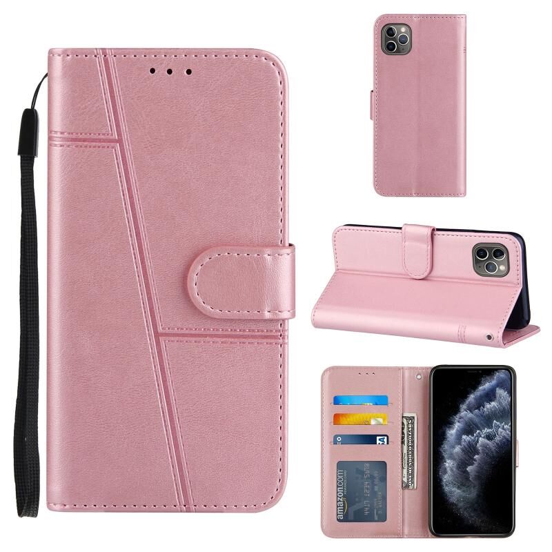 For iPhone 11 Pro Max Stitching Calf Texture Buckle Horizontal Flip Leather Case with Holder & Card Slots & Wallet & Lanyard (Pink)