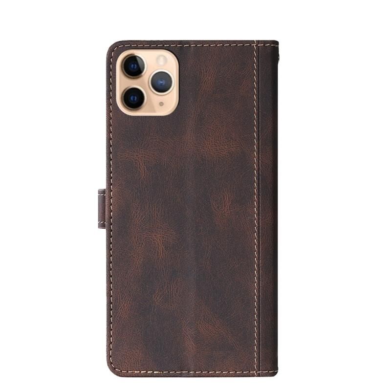 For iPhone 11 Pro Max Stitching Skin Feel Magnetic Buckle Horizontal Flip PU Leather Case with Holder & Card Slots & Wallet (Brown)