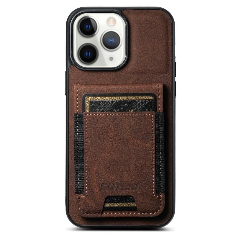 For iPhone 11 Pro Max Suteni H03 Litchi Leather Card Bag Stand Back Phone Case(Brown) (Suteni)