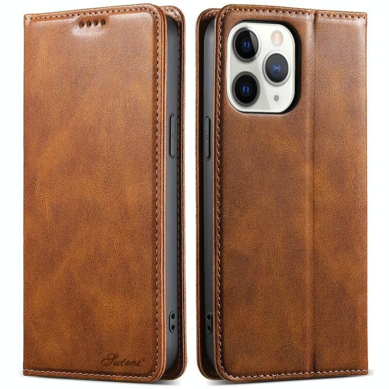 Θήκη τηλεφώνου από δέρμα με κερί λαδιού Suteni J02 για iPhone 11 Pro Max (Μαύρο) (Suteni)