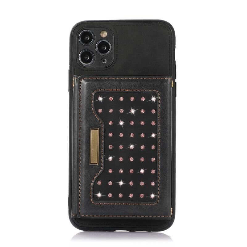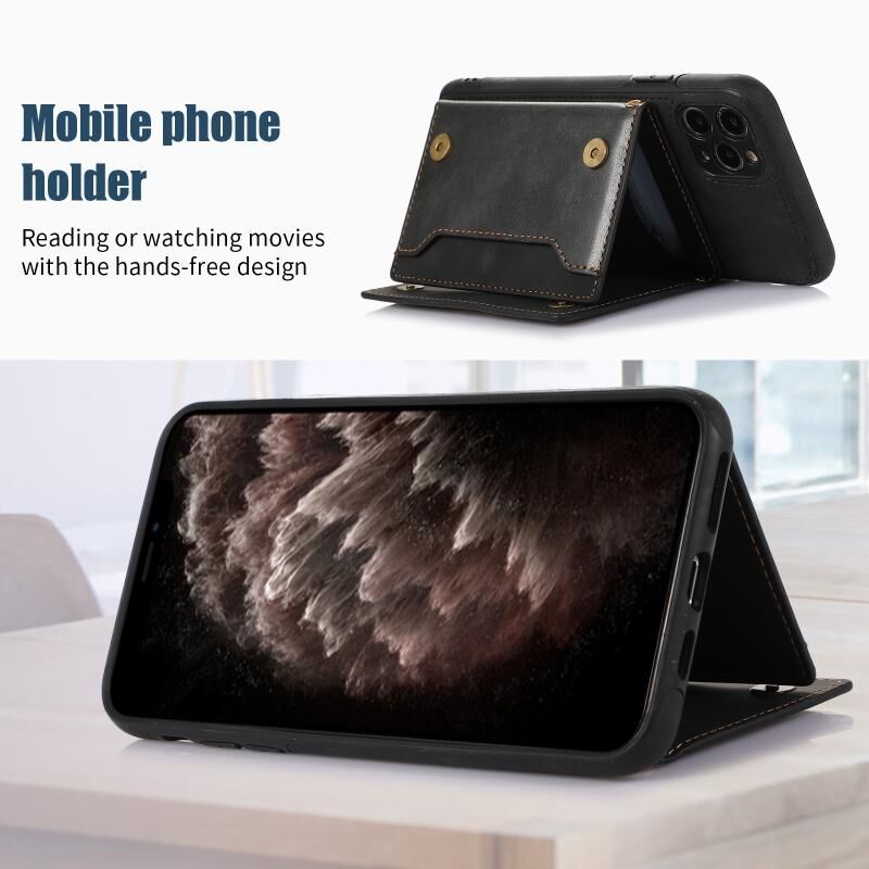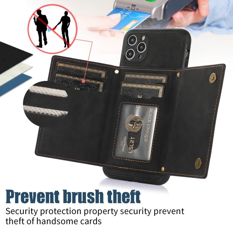 Θήκη τηλεφώνου από δέρμα με προστασία RFID για iPhone 11 Pro Max, τριπλή, με κορδόνι (Μαύρο)