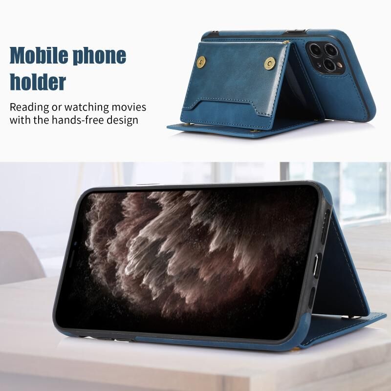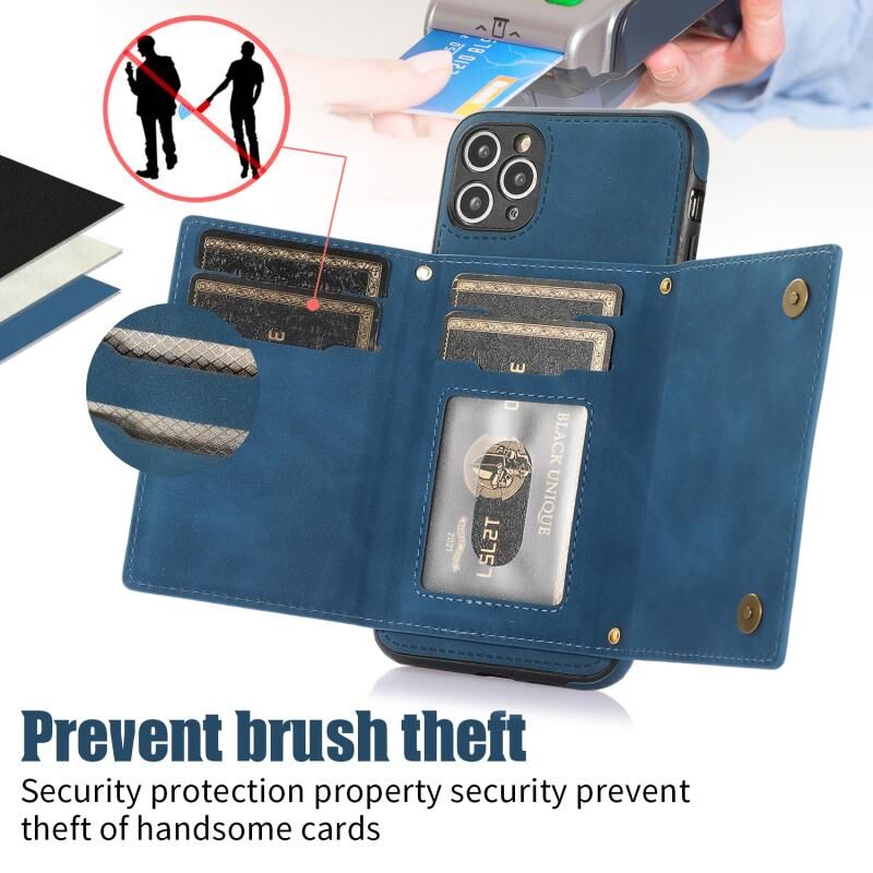 Θήκη τηλεφώνου από δέρμα με προστασία RFID για iPhone 11 Pro Max, τριπλή, με κορδόνι (Μαύρο)