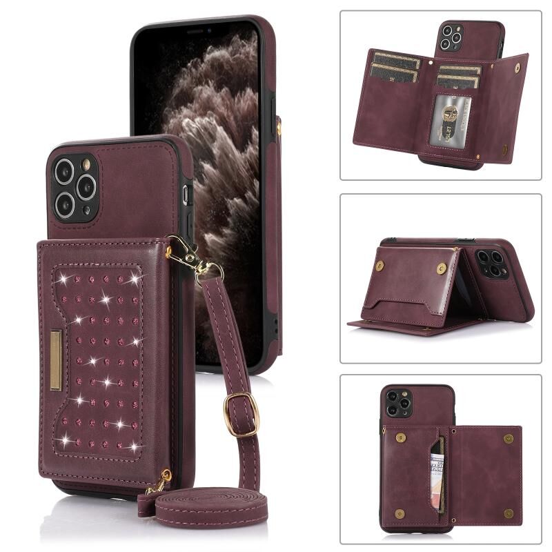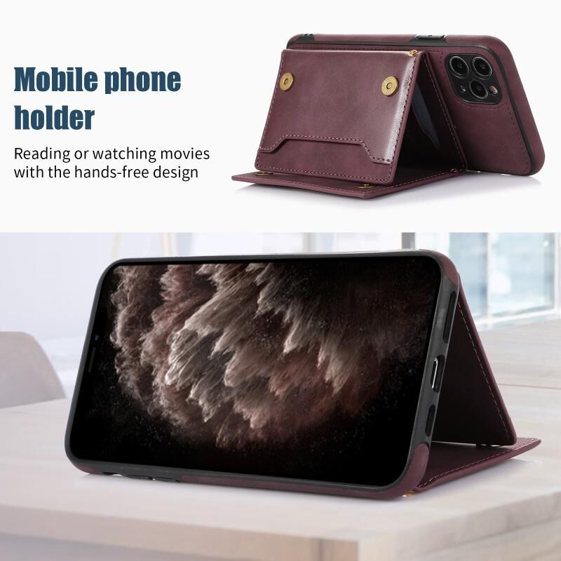 Θήκη τηλεφώνου από δέρμα με προστασία RFID για iPhone 11 Pro Max, τριπλή, με κορδόνι (Μαύρο)