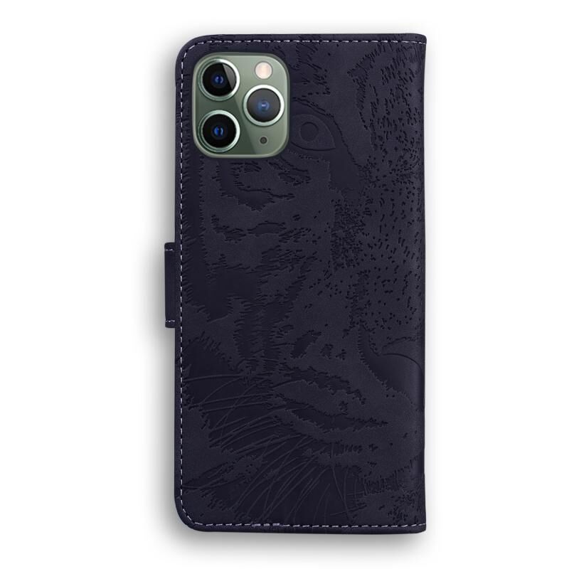 Θήκη δέρματος οριζόντιας αναδίπλωσης για iPhone 11 Pro Max με μοτίβο ανάγλυφου τίγρη, με βάση & υποδοχές καρτών & πορτοφόλι (Μαύρο)