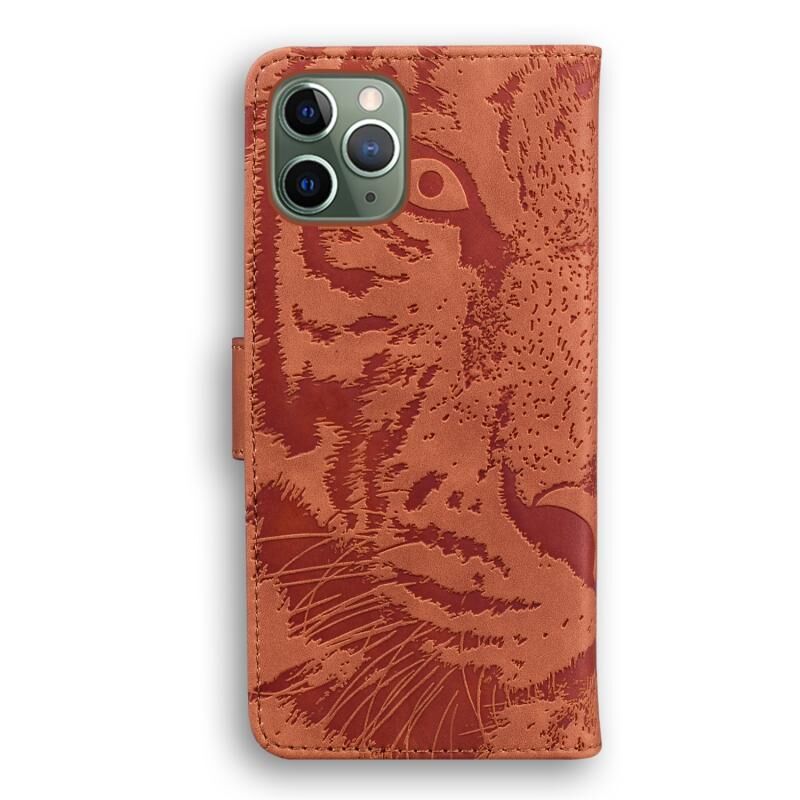 Θήκη δέρματος οριζόντιας αναδίπλωσης για iPhone 11 Pro Max με μοτίβο ανάγλυφου τίγρη, με βάση & υποδοχές καρτών & πορτοφόλι (Μαύρο)