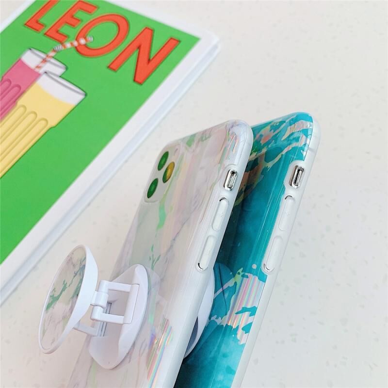 Θήκη προστασίας κινητού τηλεφώνου για iPhone 11 Pro Max από TPU, γυαλιστερή, με σχέδιο μαρμάρου laser, πολύχρωμη, με αναδιπλούμενη βάση (Λευκό).
