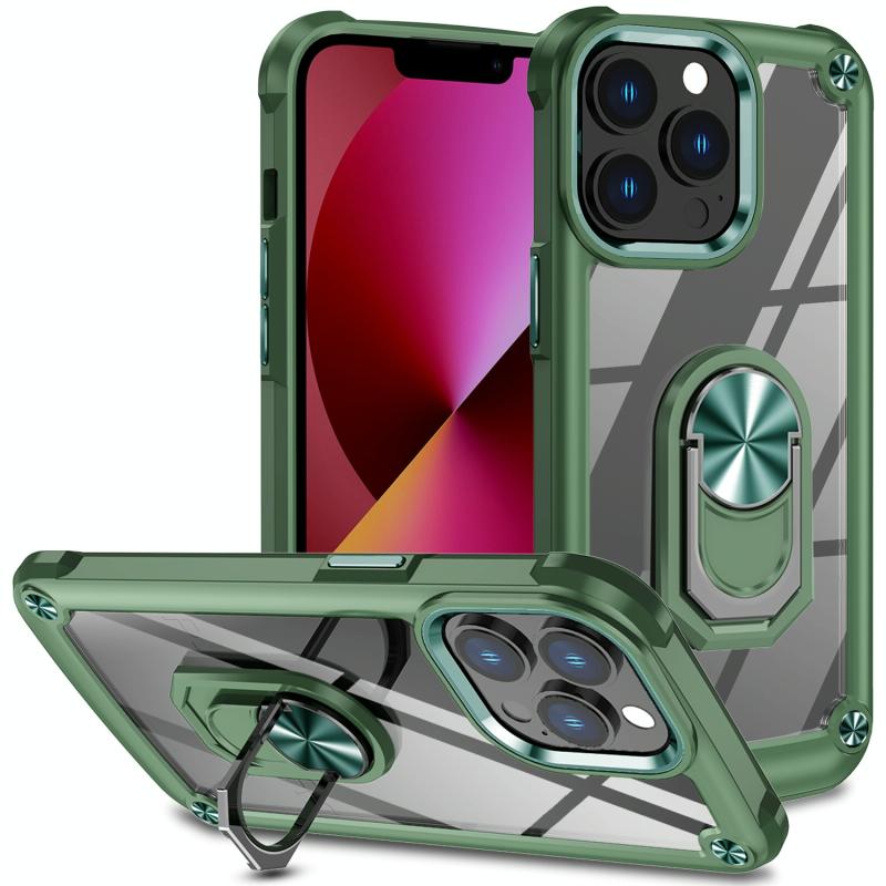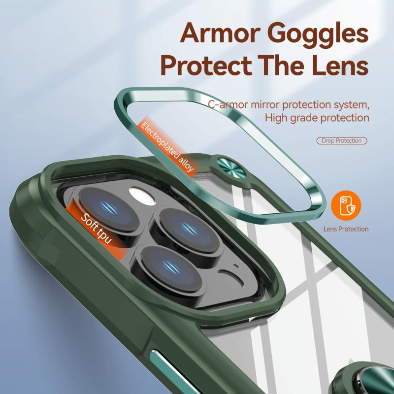For iPhone 11 Pro Max TPU + PC Lens Protection Phone Case with Ring Holder(Green)