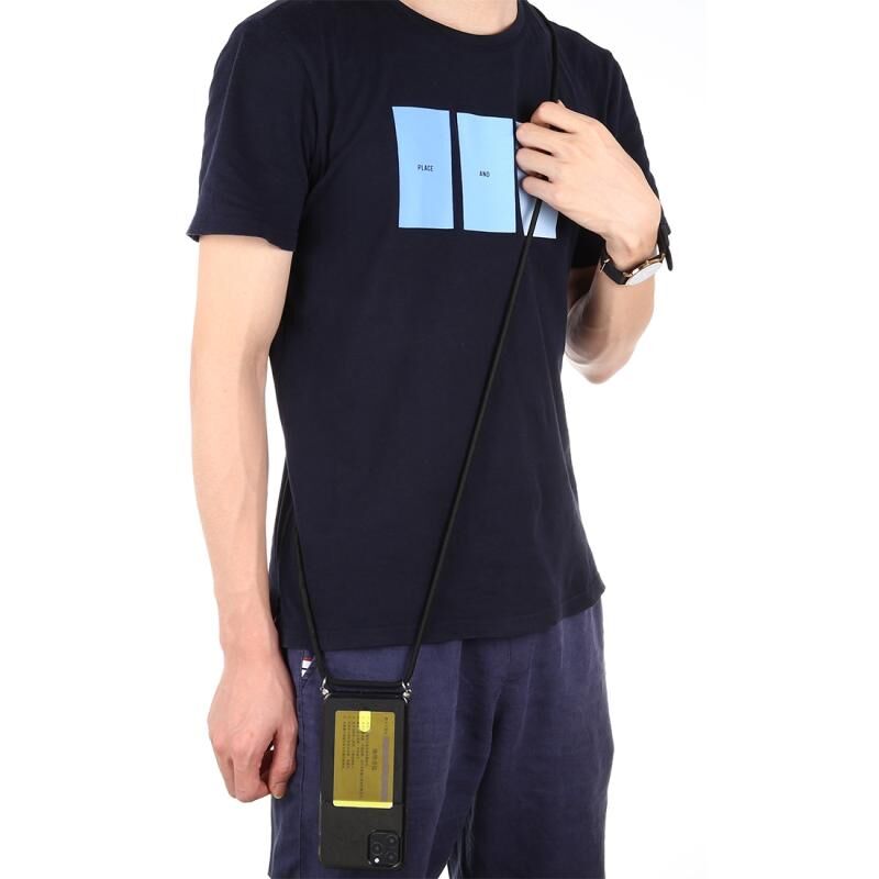 Θήκη προστασίας διαφανής TPU για iPhone 11 Pro Max με λουρί & θήκη κάρτας (Μαύρο)