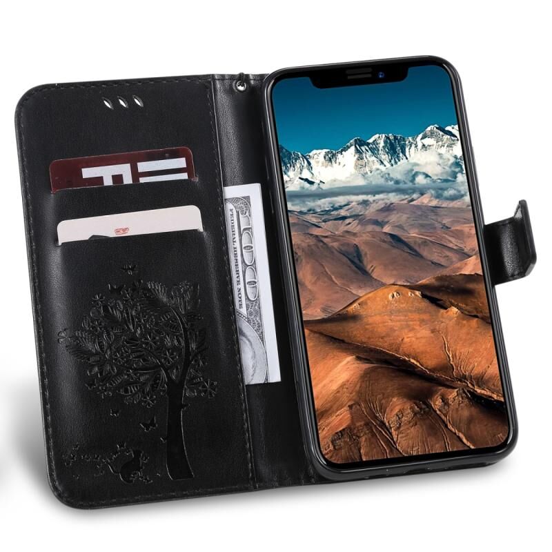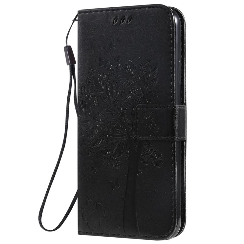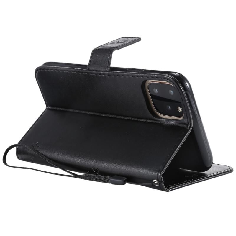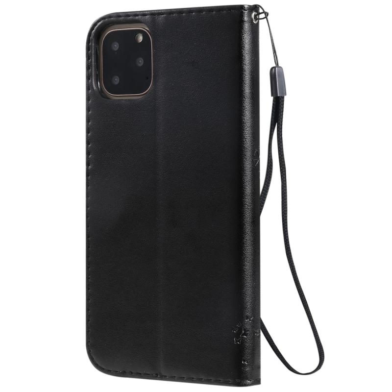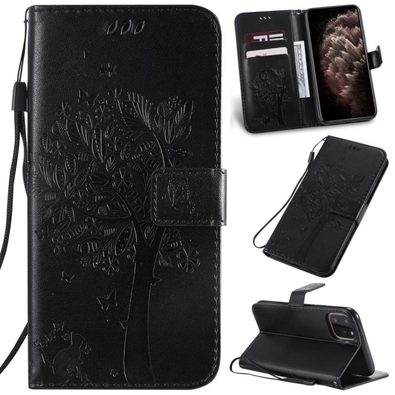 Θήκη για iPhone 11 Pro Max με σχέδιο Δέντρου & Γάτας, εκτύπωση με πίεση, οριζόντια αναδιπλούμενη από δερματίνη PU με βάση στήριξης & θήκες για κάρτες & πορτοφόλι & κορδόνι (Μαύρο)