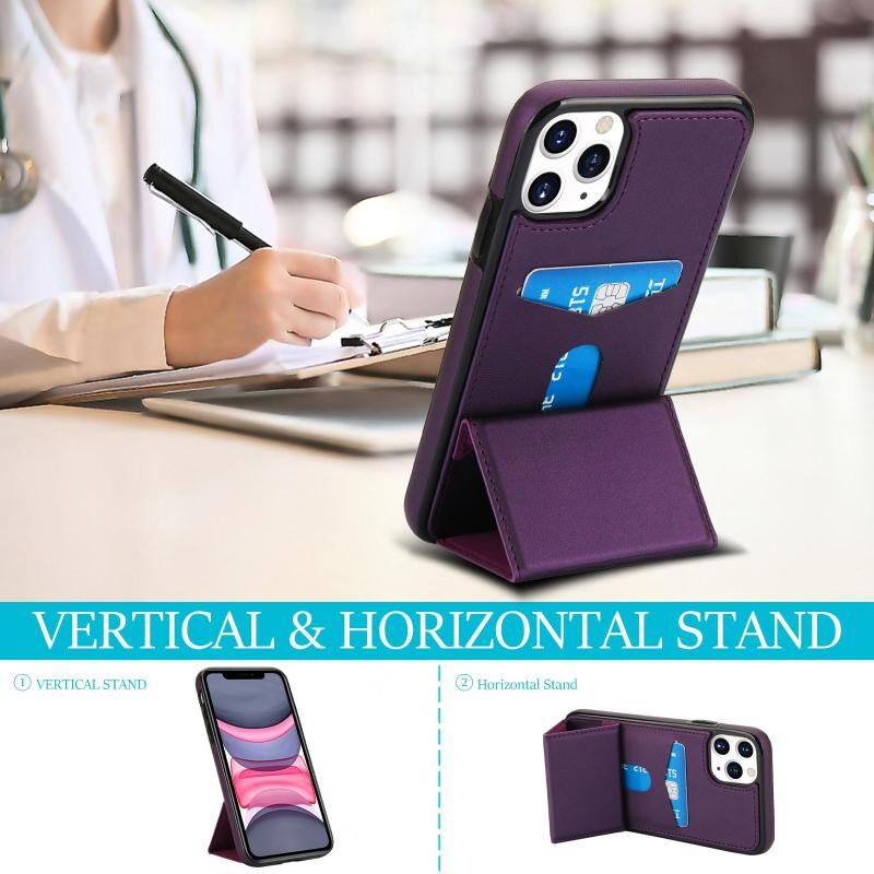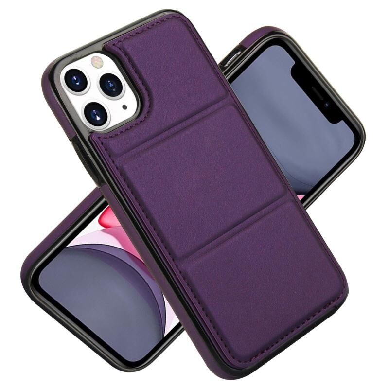 For iPhone 11 Pro Max Tri-fold Holder Leather Phone Case with Card Slot(Dark Purple)