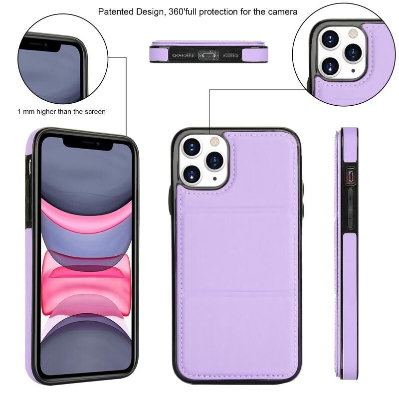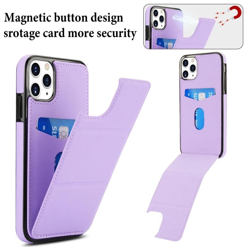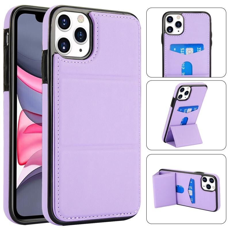 For iPhone 11 Pro Max Tri-fold Holder Leather Phone Case with Card Slot(Light Purple)
