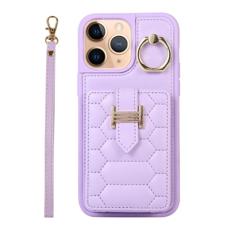 For iPhone 11 Pro Max Vertical Card Bag Ring Holder Phone Case with Dual Lanyard(Purple)