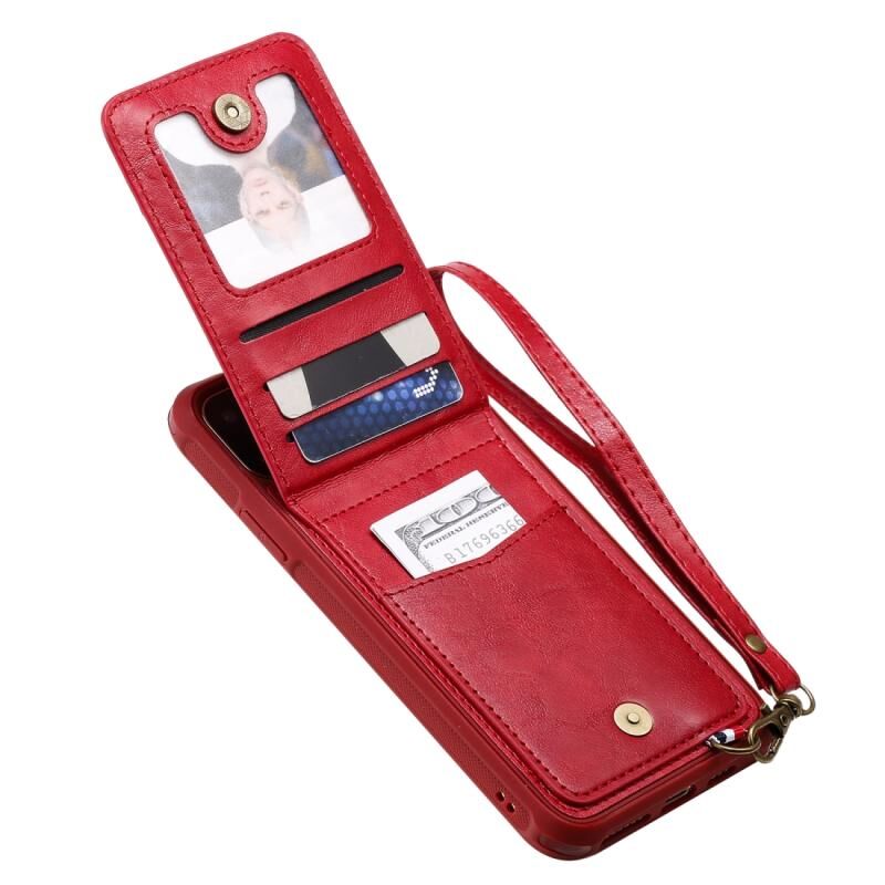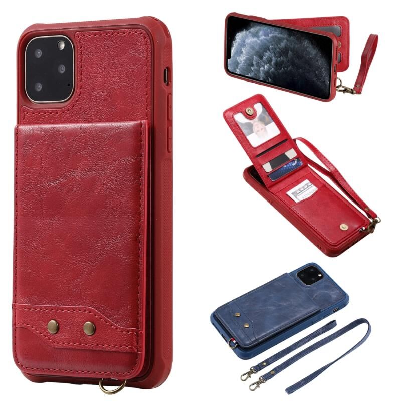 For iPhone 11 Pro Max Vertical Flip Wallet Shockproof Back Cover Protective Case with Holder & Card Slots & Lanyard & Photos Frames(Red)