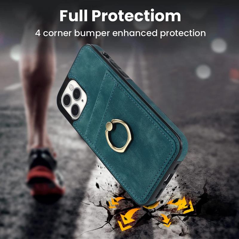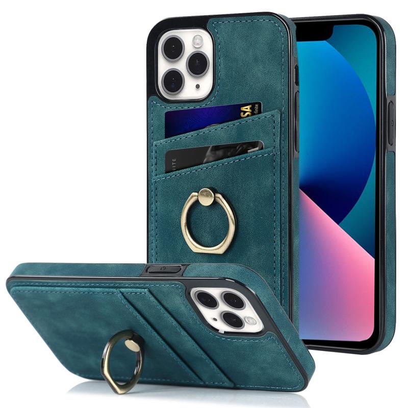 For iPhone 11 Pro Max Vintage Patch Leather Phone Case with Ring Holder (Blue)