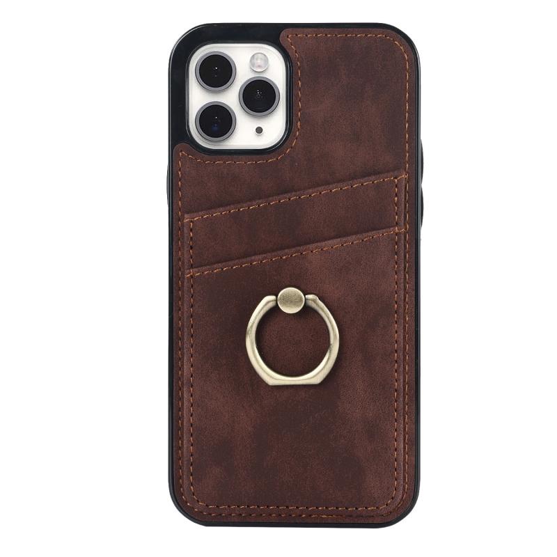 For iPhone 11 Pro Max Vintage Patch Leather Phone Case with Ring Holder (Brown)