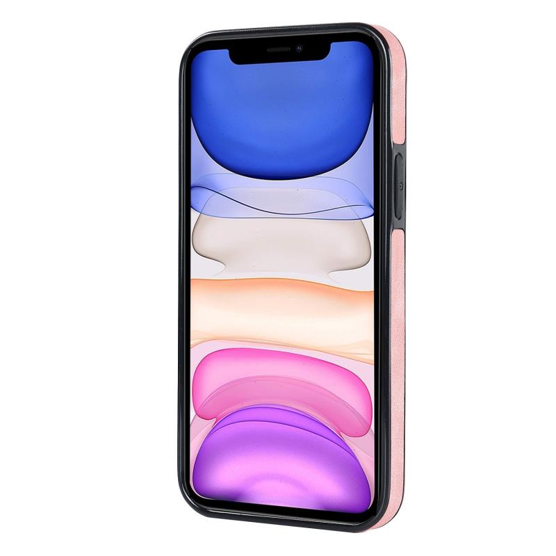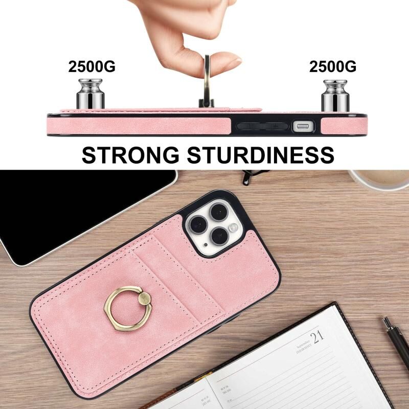 For iPhone 11 Pro Max Vintage Patch Leather Phone Case with Ring Holder (Pink)