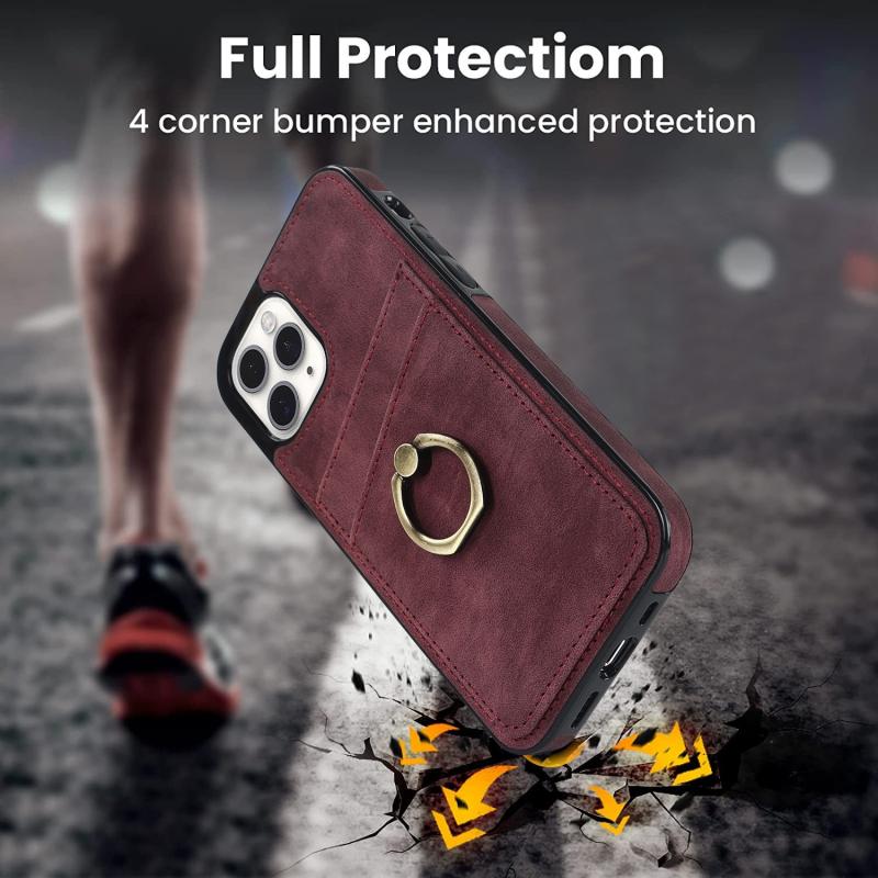 For iPhone 11 Pro Max Vintage Patch Leather Phone Case with Ring Holder (Red)