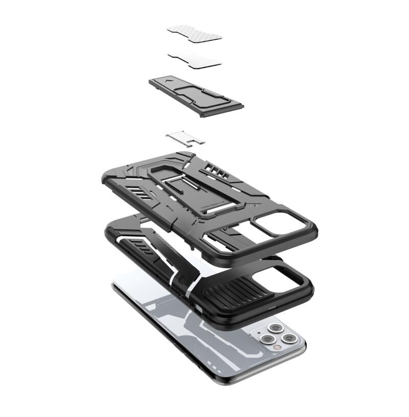 Θήκη προστασίας για iPhone 11 Pro Max σειράς War Chariot, πλήρως προστατευτική, αντικραδασμική από PC + TPU με αόρατη βάση στήριξης (Λευκό)