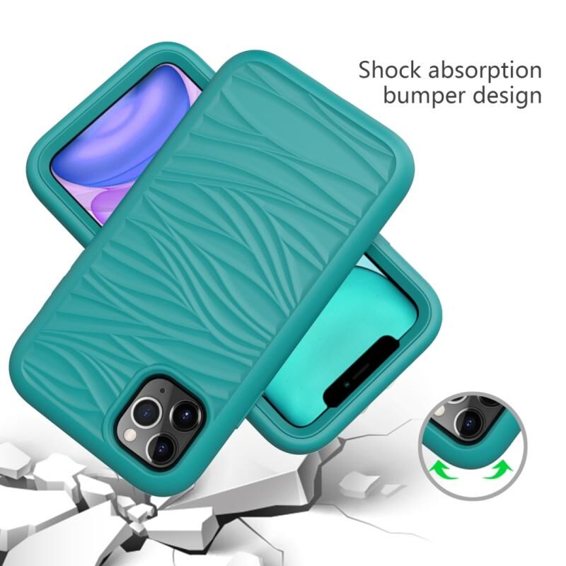 Θήκη Προστασίας 3 σε 1 από Σιλικόνη+PC Αντικραδασμική για iPhone 11 Pro Max με Σχέδιο Κυμάτων (Μαύρο)