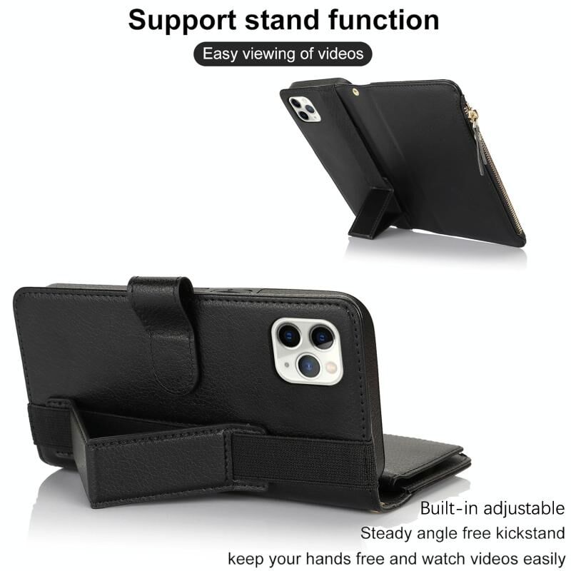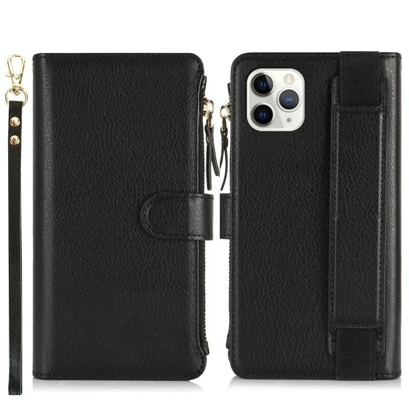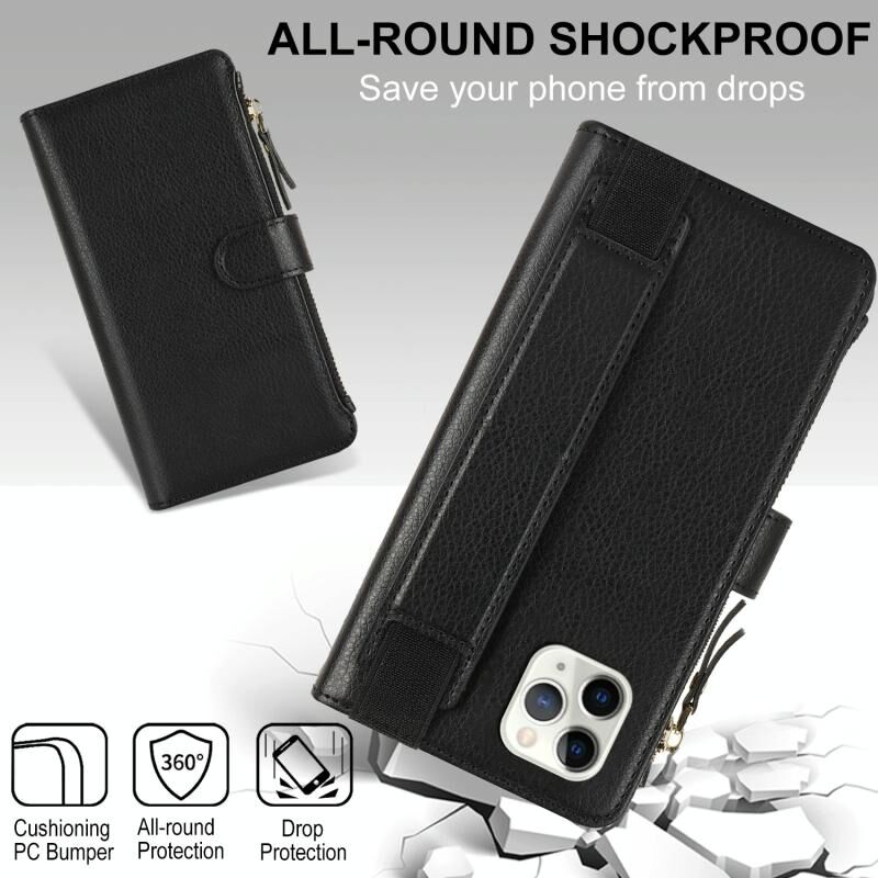 Θήκη για iPhone 11 Pro Max με Βραχιόλι, Πορτοφόλι με Φερμουάρ, Δέρμα με Προστασία RFID (Μαύρο)