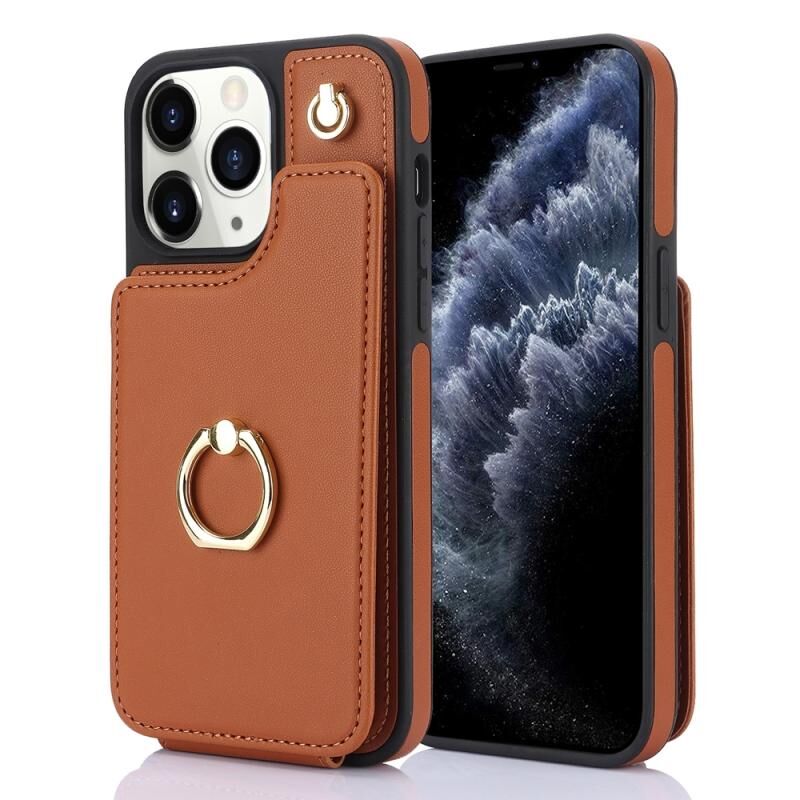 For iPhone 11 Pro Max YM005 Skin Feel Card Bag Phone Case with Long Lanyard(Brown)