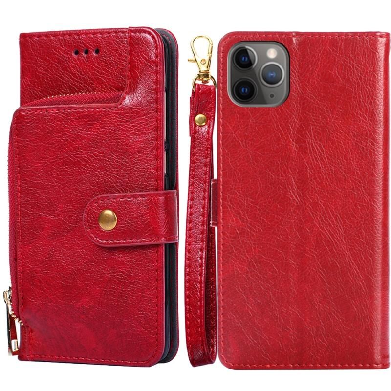 For iPhone 11 Pro Max Zipper Bag PU + TPU Horizontal Flip Leather Case with Holder & Card Slot & Wallet & Lanyard (Red)