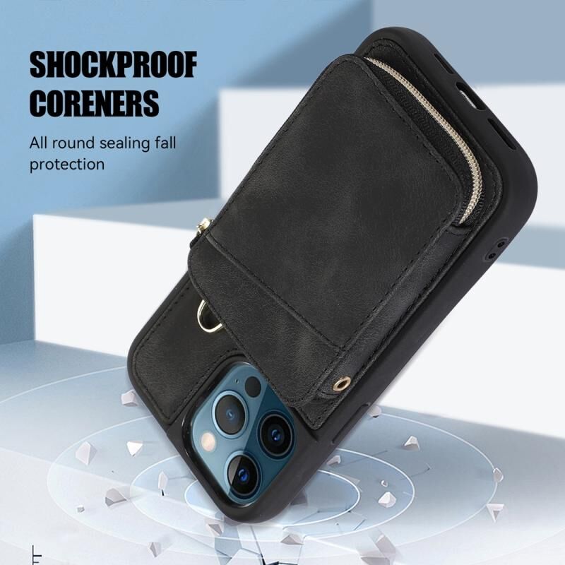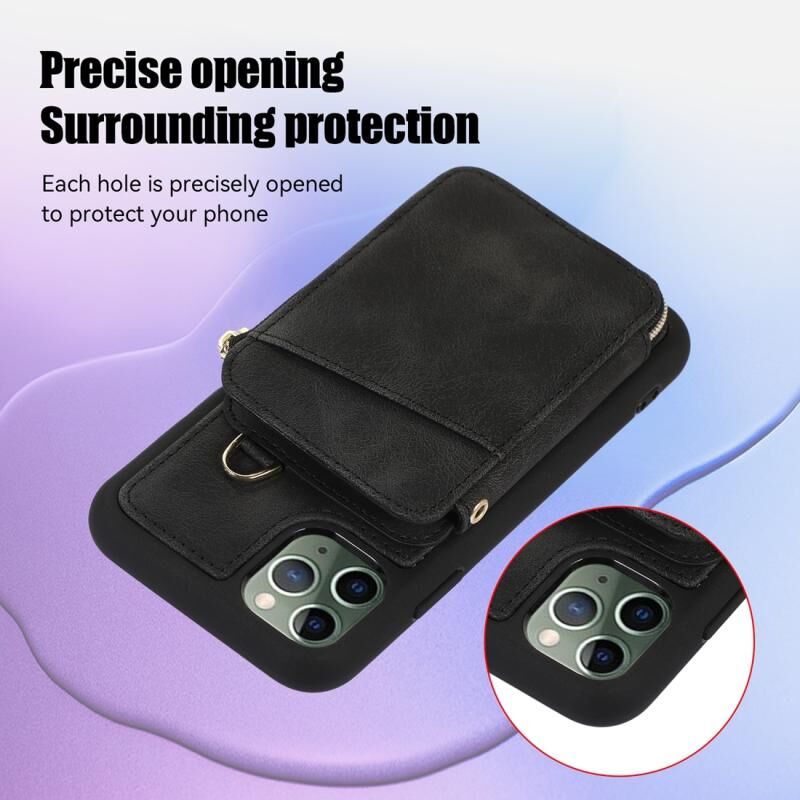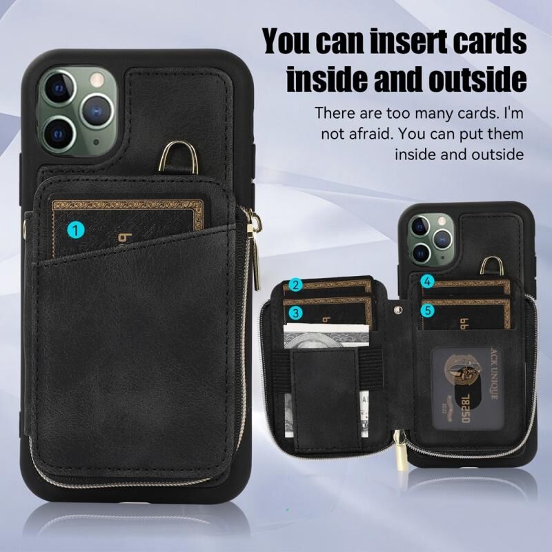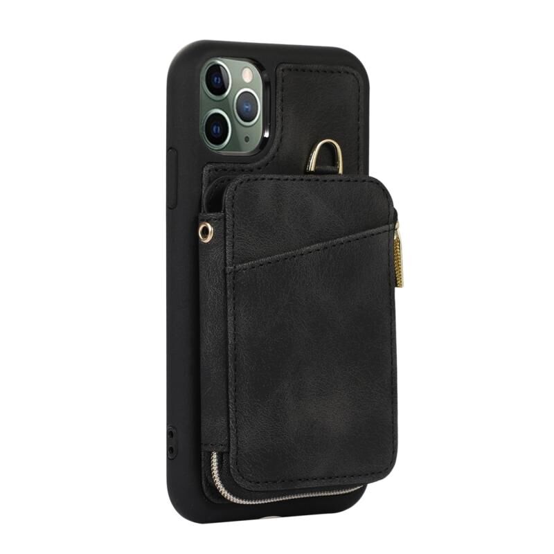 For iPhone 11 Pro Max Zipper Card Bag Back Cover Phone Case(Black)