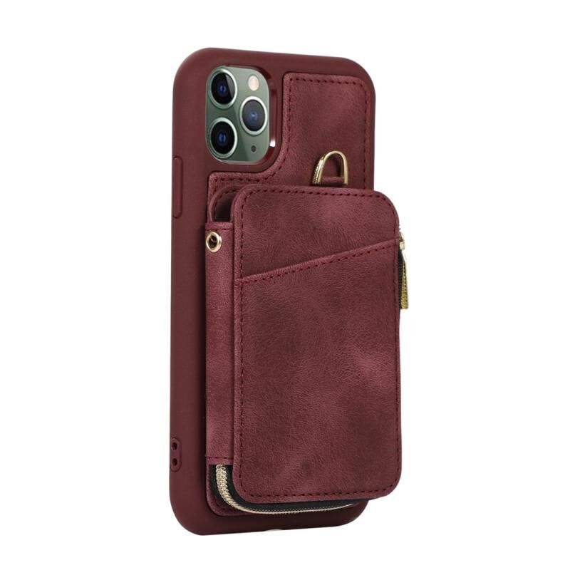 For iPhone 11 Pro Max Zipper Card Bag Back Cover Phone Case(Wine Red)