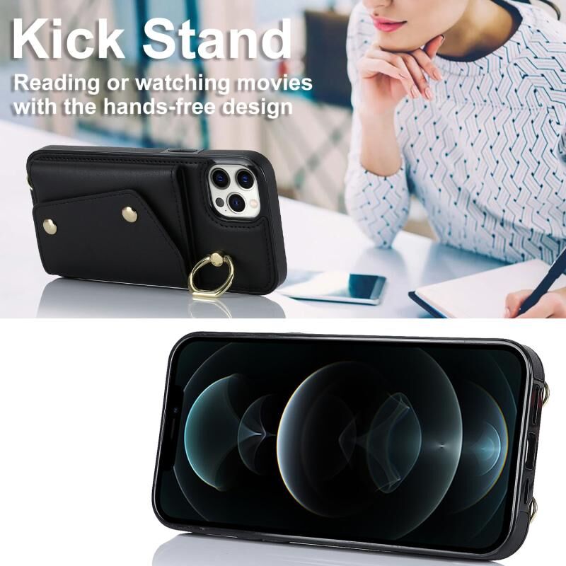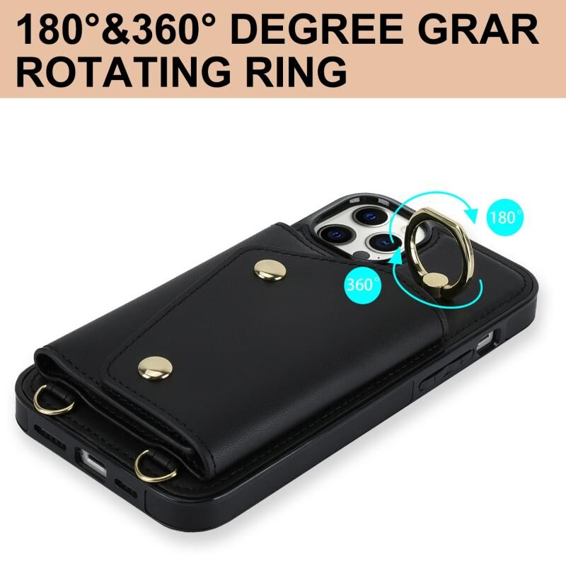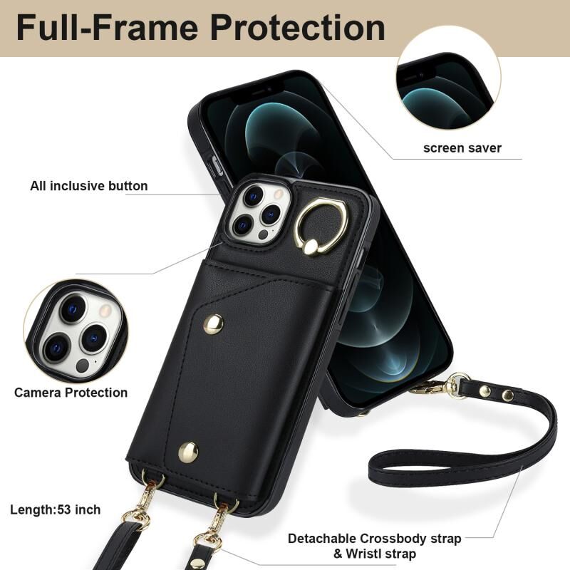 For iPhone 11 Pro Max Zipper Card Bag Phone Case with Dual Lanyard(Black)