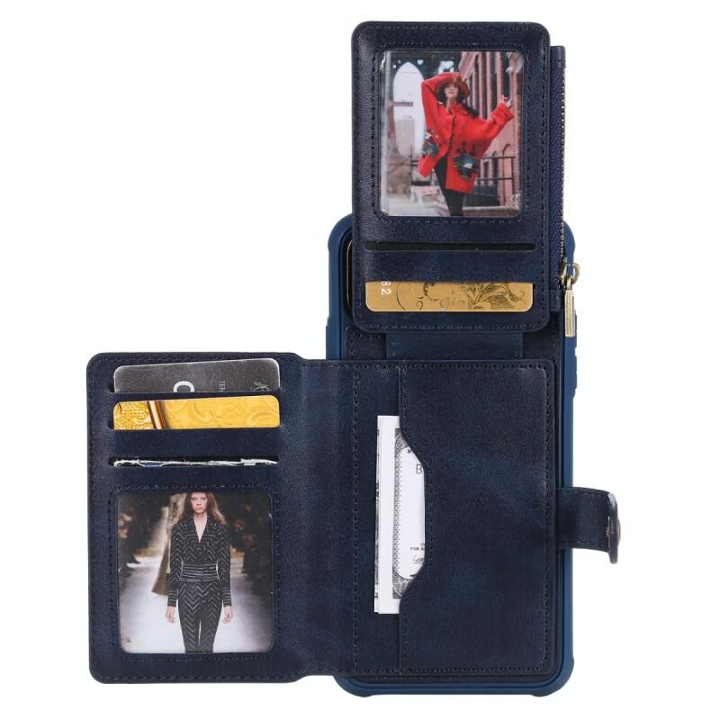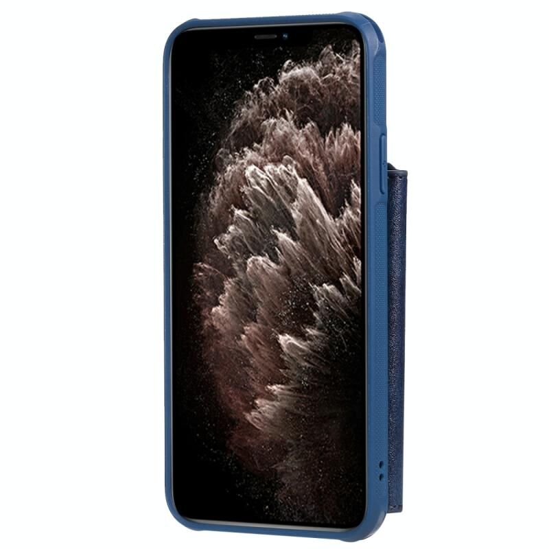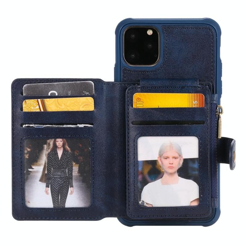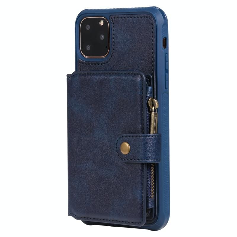 For iPhone 11 Pro Max Zipper Shockproof Protective Case with Card Slots & Bracket & Photo Holder & Wallet Function(Blue)