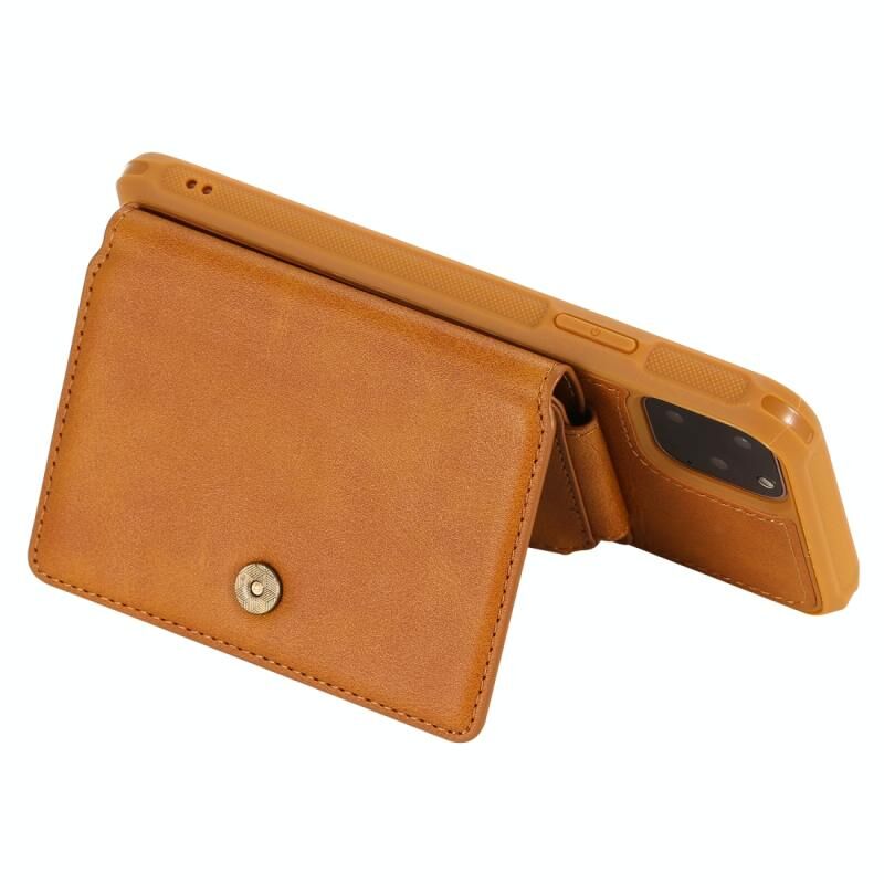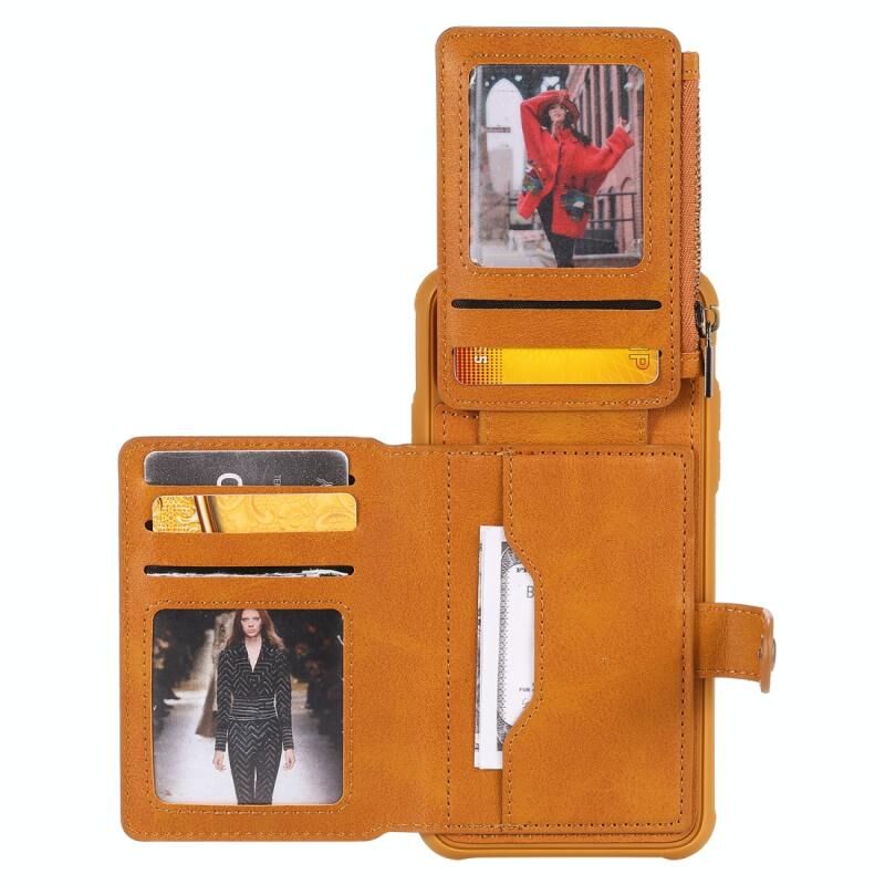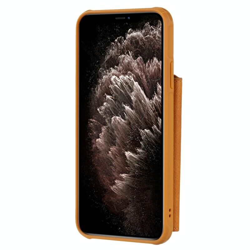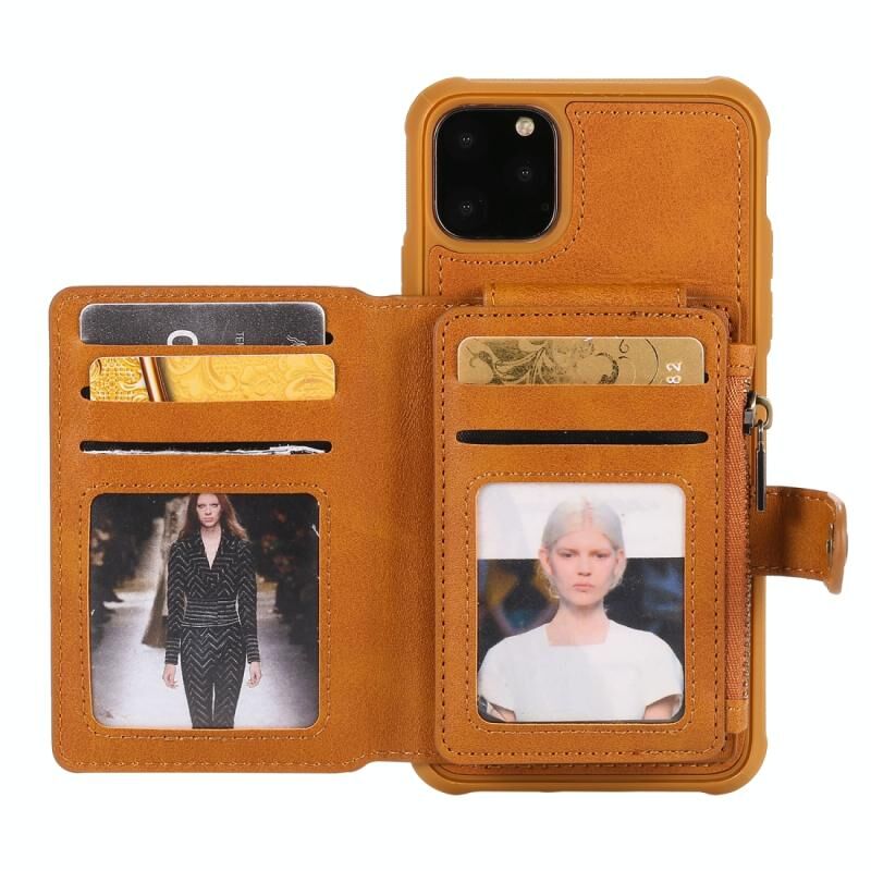 For iPhone 11 Pro Max Zipper Shockproof Protective Case with Card Slots & Bracket & Photo Holder & Wallet Function(Brown)