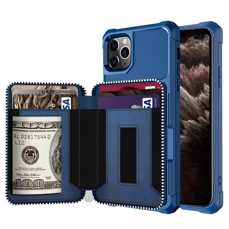 Θήκη για iPhone 11 Pro Max με φερμουάρ, τσέπη για κάρτες, από PU δέρμα (Κόκκινο)