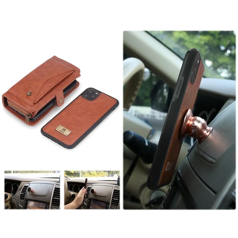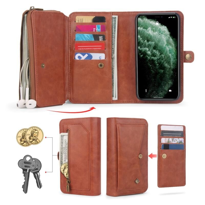 Θήκη τηλεφώνου από δέρμα με πολλαπλές λειτουργίες και φερμουάρ για iPhone 11 Pro (Μαύρο)