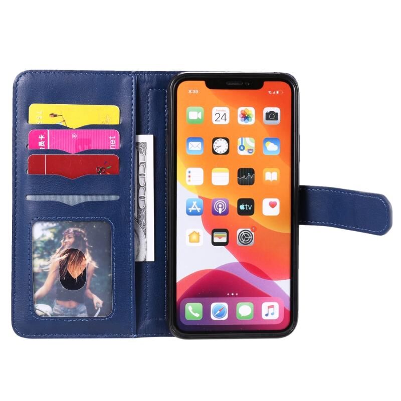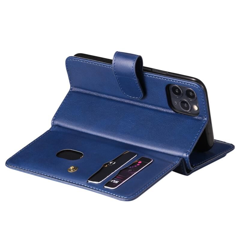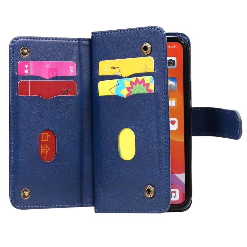 Θήκη για iPhone 11 Pro, πολυλειτουργική, μαγνητική, με αγκράφα από χαλκό, οριζόντια, μονόχρωμη, από δέρμα, με 10 υποδοχές για κάρτες & πορτοφόλι & βάση στήριξης & κορνίζα φωτογραφιών (Κρασί)