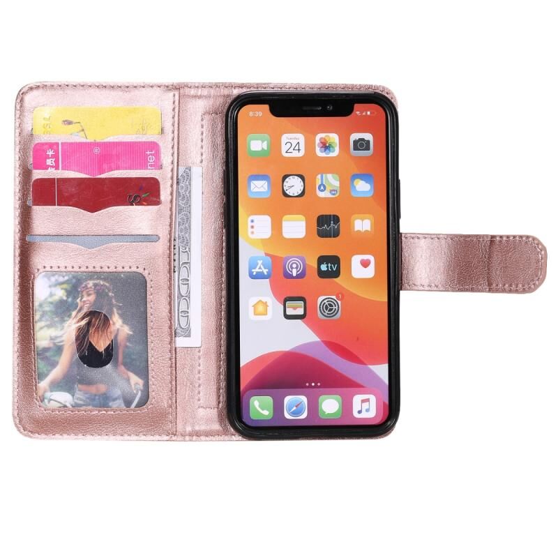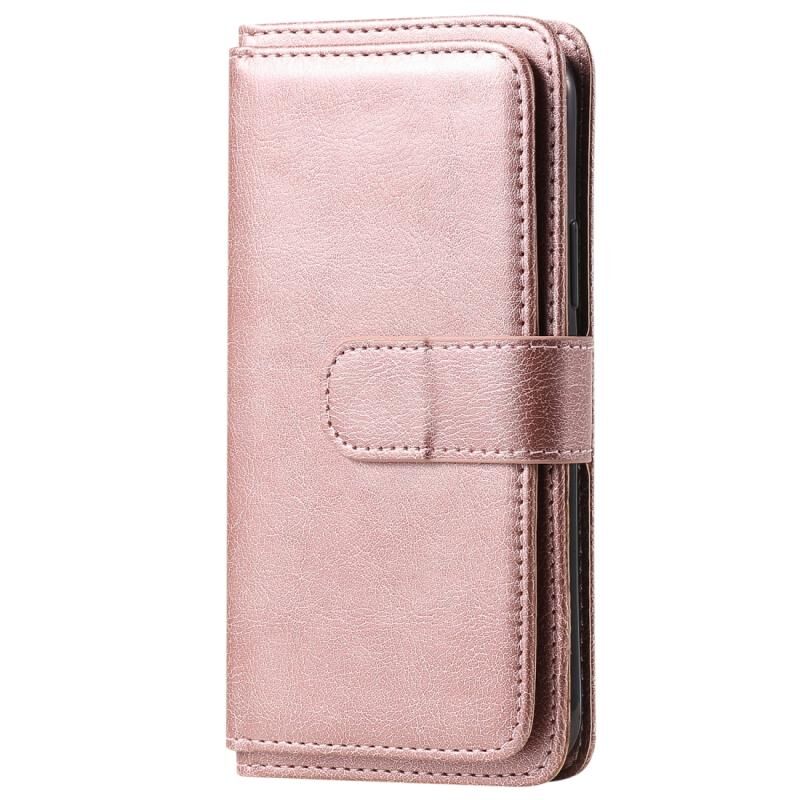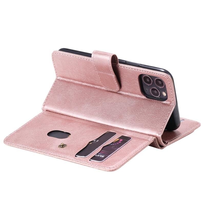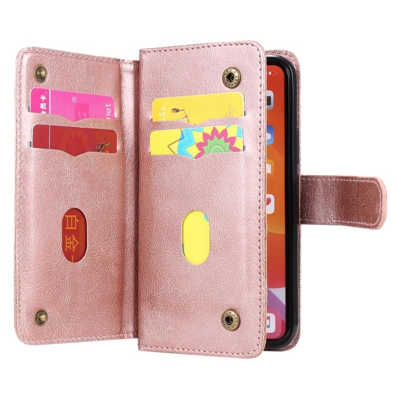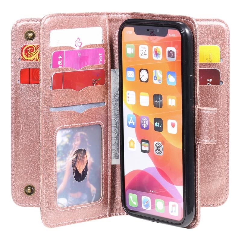 Θήκη για iPhone 11 Pro, πολυλειτουργική, μαγνητική, με αγκράφα από χαλκό, οριζόντια, μονόχρωμη, από δέρμα, με 10 υποδοχές για κάρτες & πορτοφόλι & βάση στήριξης & κορνίζα φωτογραφιών (Κρασί)