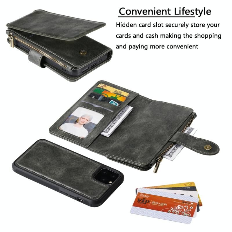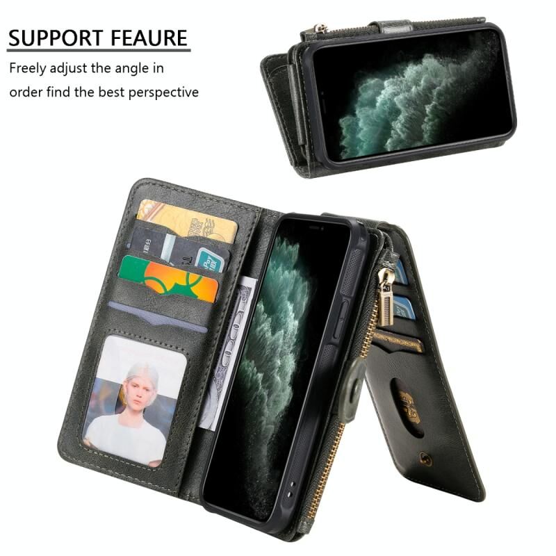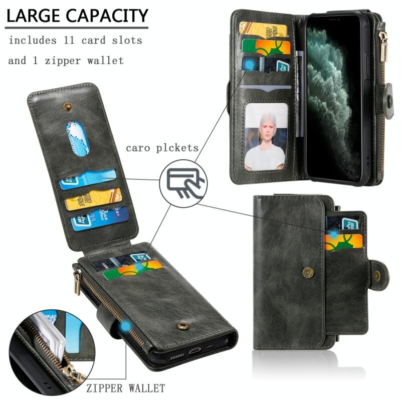 For iPhone 11 Pro Multifunctional Retro Detachable Magnetic Horizontal Flip Leather Case with Card Slots & Holder & Wallet & Photo Frame(Dark Green)