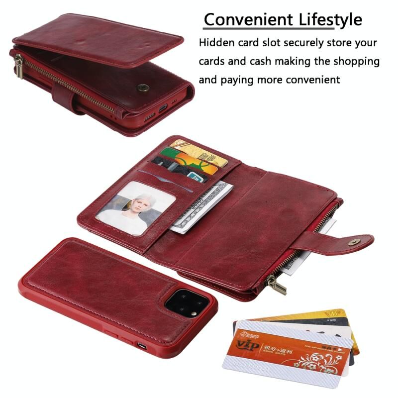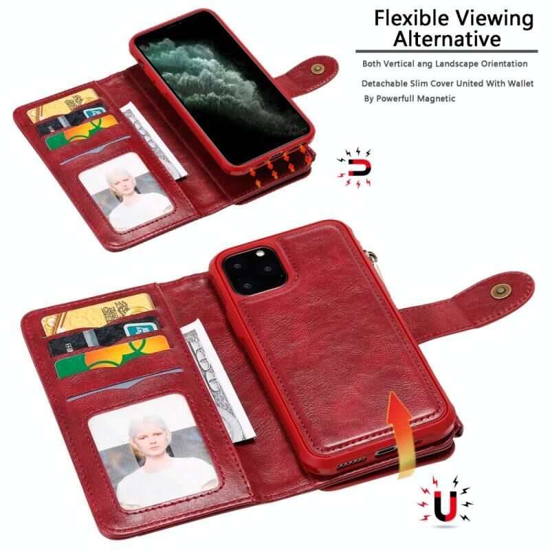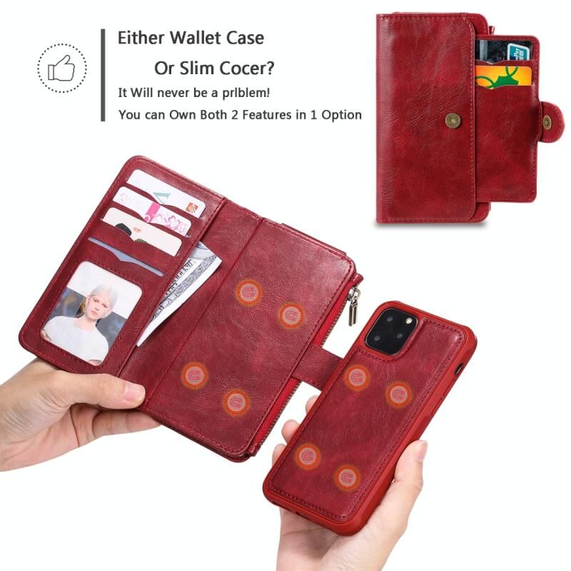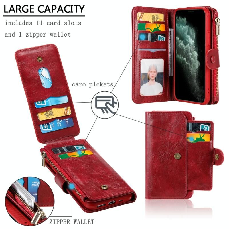 For iPhone 11 Pro Multifunctional Retro Detachable Magnetic Horizontal Flip Leather Case with Card Slots & Holder & Wallet & Photo Frame(Red)