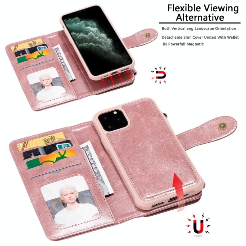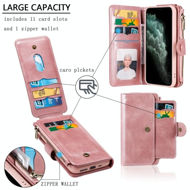 For iPhone 11 Pro Multifunctional Retro Detachable Magnetic Horizontal Flip Leather Case with Card Slots & Holder & Wallet & Photo Frame(Rose Gold)