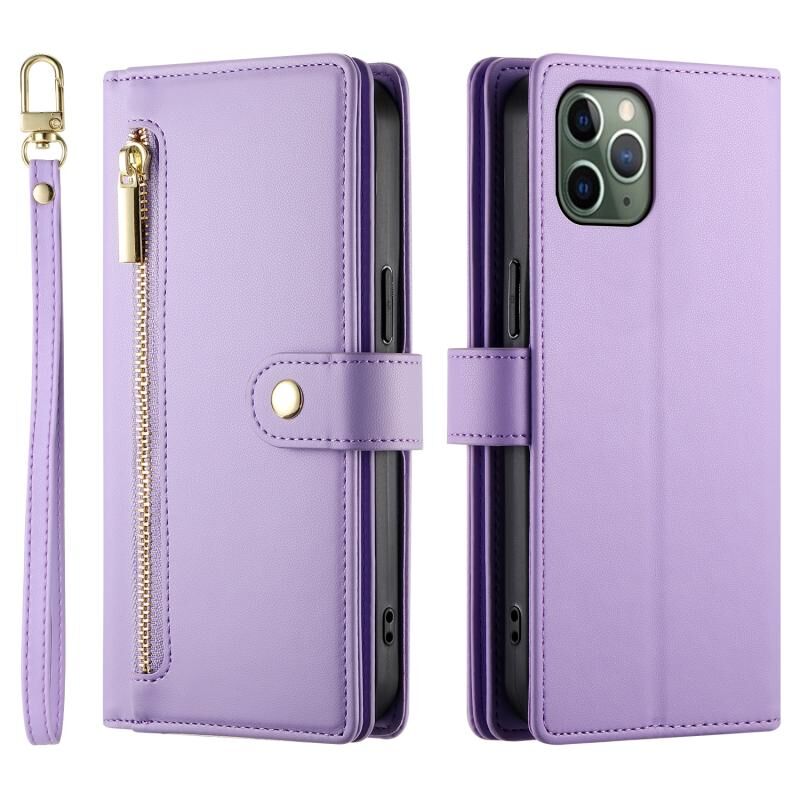 For iPhone 11 Pro Nine Card-slot Zipper Wallet Bag Leather Phone Case(Purple)