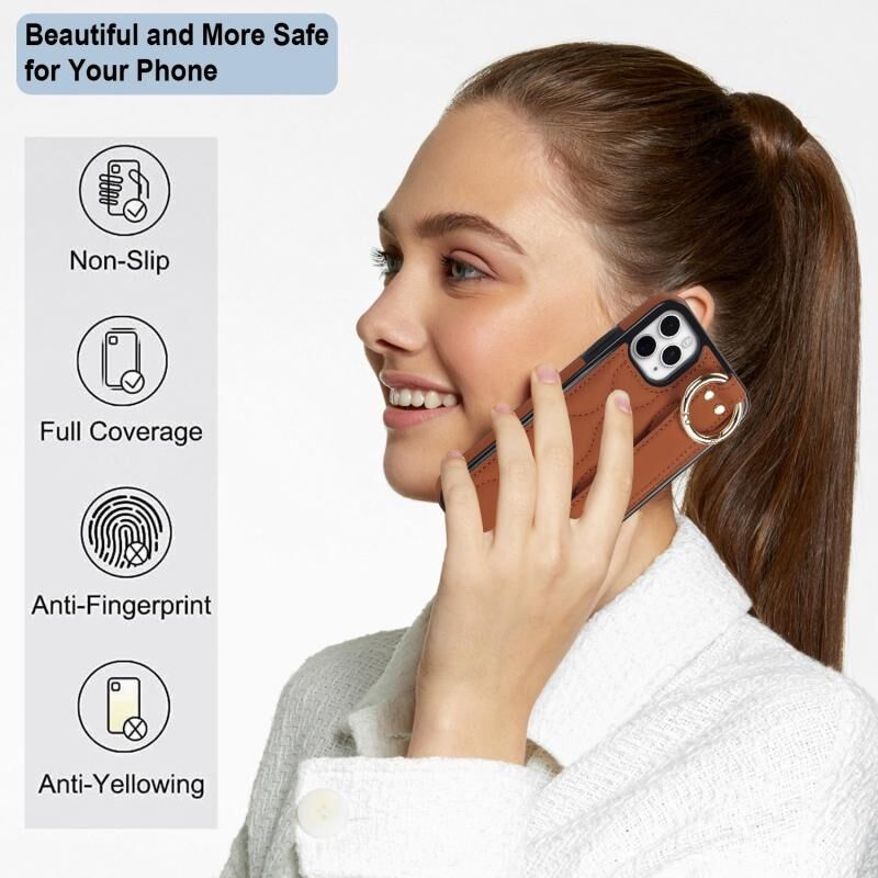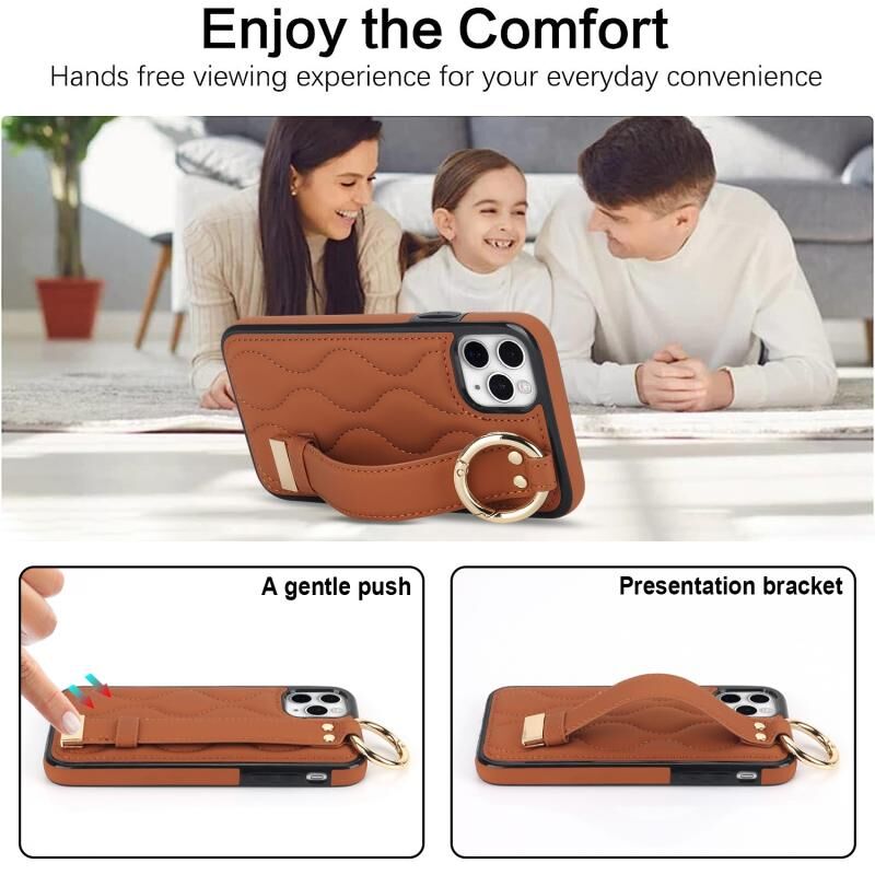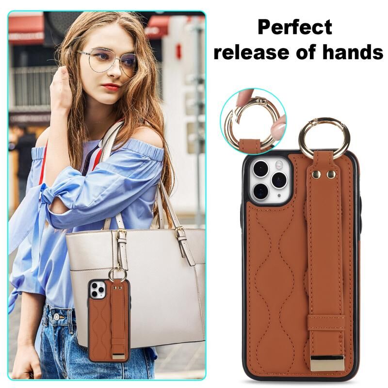 2. The back of the phone case has a freely stretchable band, which is fixed by a solid metal nail and being a kickstand which is good for moving.