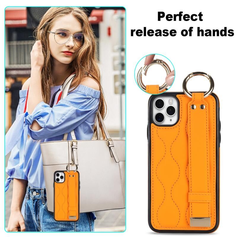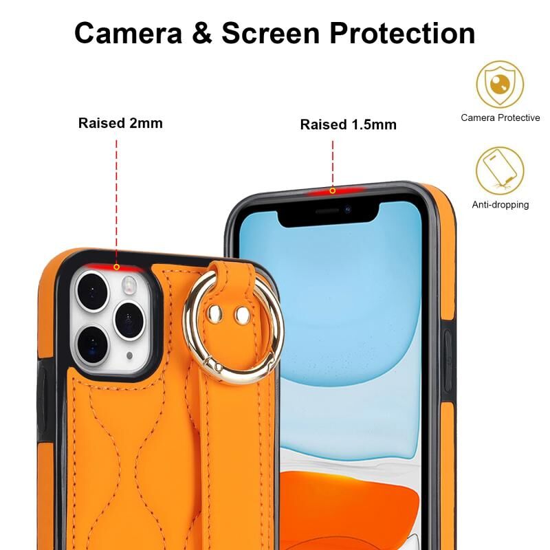 For iPhone 11 Pro Non-slip Full Coverage Ring PU Phone Case with Wristband(Orange)