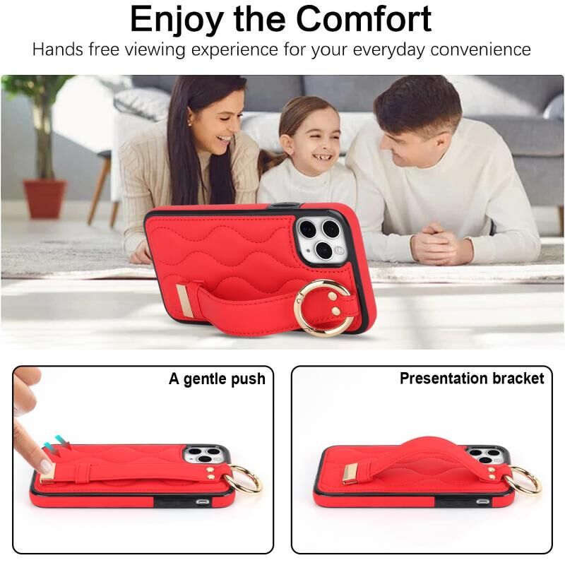 For iPhone 11 Pro Non-slip Full Coverage Ring PU Phone Case with Wristband(Red)