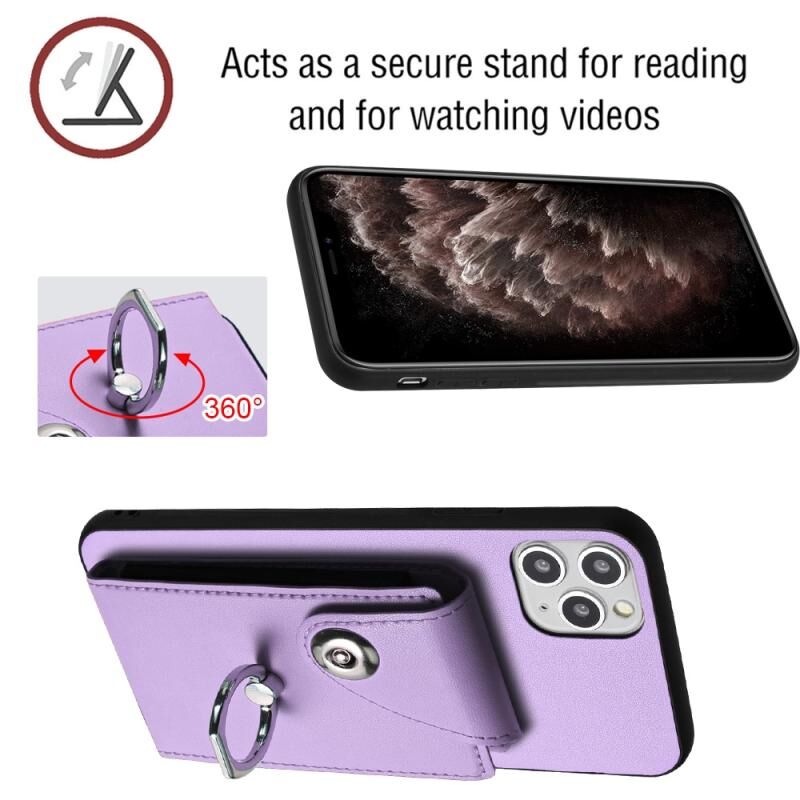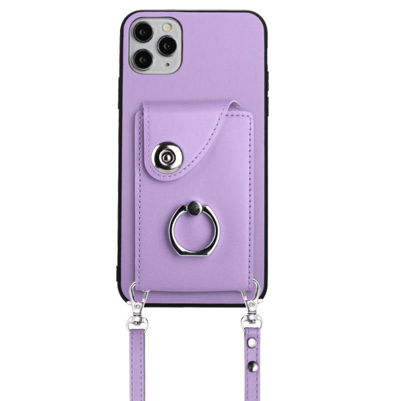 For iPhone 11 Pro Organ Card Bag Ring Holder Phone Case with Long Lanyard(Purple)